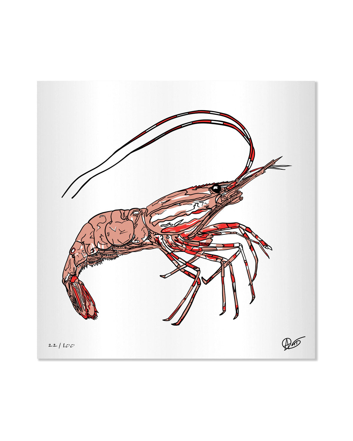 “The spotted prawn is one of those quiet treasures of the Pacific, small, tough, and full of character. I wanted to capture its form and color the way it looks fresh from the trap, with every line and tone. This piece is a simple tribute to the waters and creatures that keep us connected to the coast.”